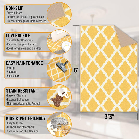 Ottomanson 3'3" x 5' Rugs for Living Room Trellis Area Rug for Bedroom - Non Slip Durable Large Floor Carpet for High Traffic Areas - Indoor Rug for Dining Room Kitchen Kids Playroom, Yellow