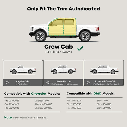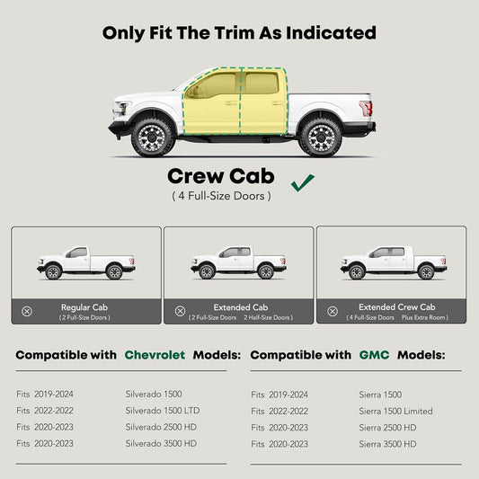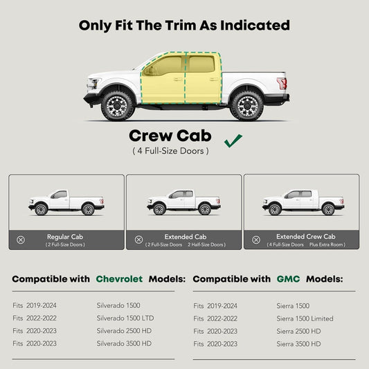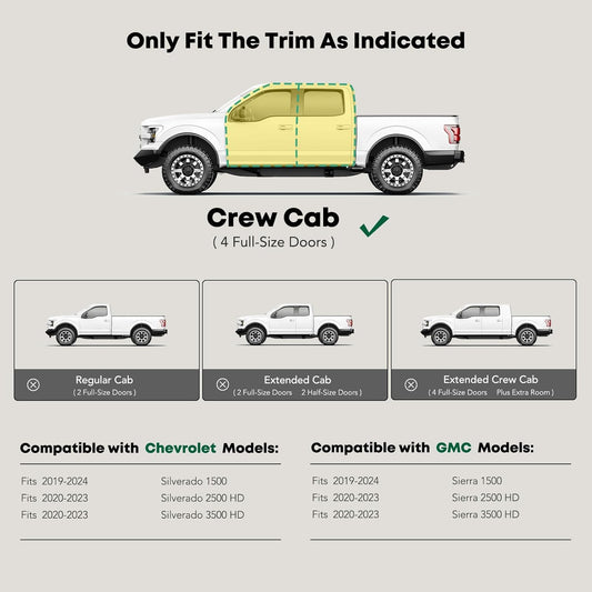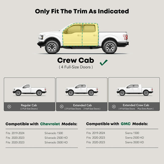 YHTAUTO 4" Running Boards Side Steps Fits Chevy & GMC Silverado/Sierra 1500 19-24, Silverado 1500 LTD/Sierra 1500 Limited 22, Silverado/Sierra 2500 HD & 3500 HD 20-24 - Crew Cab, Oval Straight Truck
