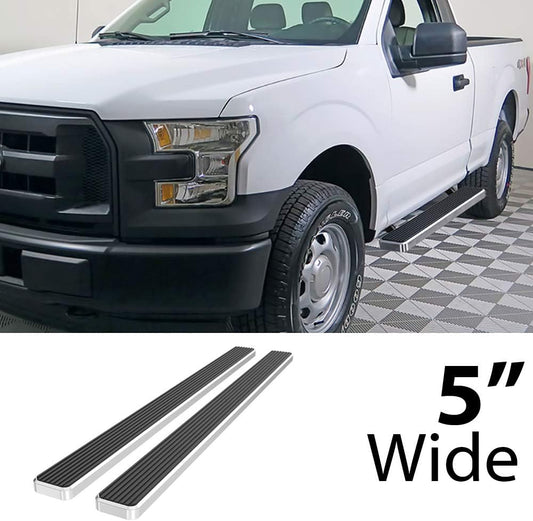 APS Wheel to Wheel Running Boards 5in Compatible with Ford F150 2015-2025 Regular Cab 6.5ft Bed & F-250 F-350 Super Duty 2017-2025 (Nerf Bars Side Steps Side Bars)