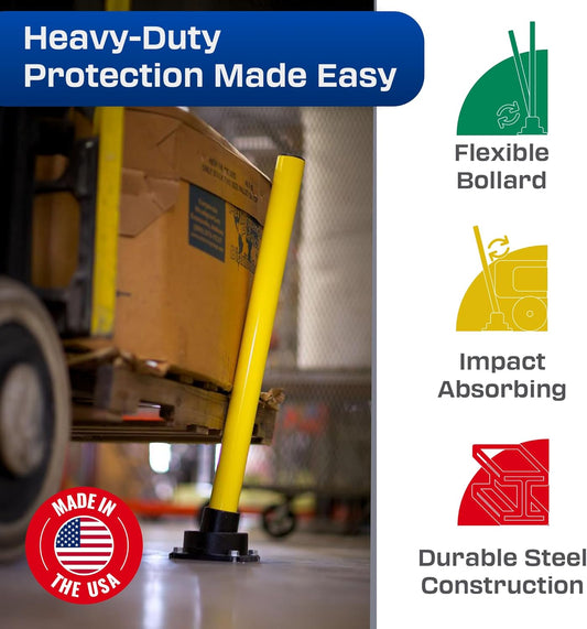 Impact Recovery - SlowStop Steel Rebounding Bollard - Metal Post - Safety Bollard - Made in the USA - 4" x 42"