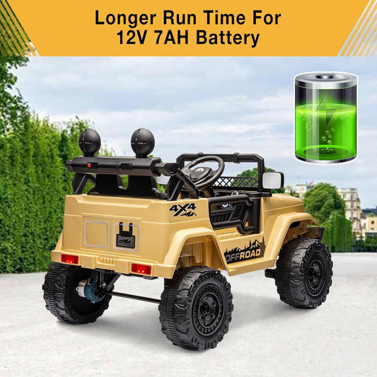 INFANS Kids Ride on Car Truck with 2.4G Remote Control, 12V Battery Powered Electric Cars for Kids w/3 Speeds, Battery Display, LED Lights, Safety Belt, Music & Horn, Bluetooth/FM/USB (Khaki)