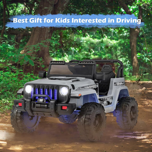 INFANS Kids Ride on Car Truck with 2.4G Remote Control, 12V Battery Powered Electric Cars for Kids w/3 Speeds, Battery Display, LED Lights, Safety Belt, Music & Horn, Bluetooth/FM/USB (Gray)