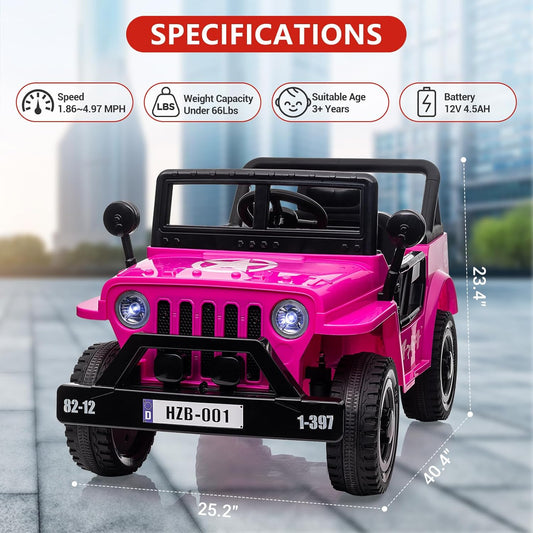 JOYMOR Ride on Truck with Remote Control, 4 Wheels 12V Battery Powered Kids Car, with LED Headlight/Horn Button/ MP3 Player/USB Port/Forward Backward/Kids Girl Boy (Pink)