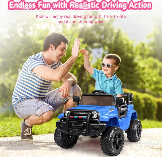 JOYMOR Ride on Truck with Remote Control, 4 Wheels 12V Battery Powered Kids Car, with LED Headlight/Horn Button/ MP3 Player/USB Port/Forward Backward/Kids Girl Boy (Blue)