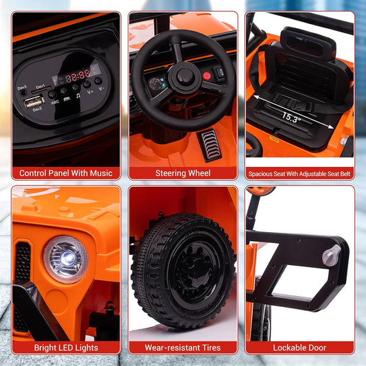 12V Ride On Truck for Kids, Electric Cars for Toddlers w/Remote Control, Soft Start, LED Lights, Horn, Radio, USB/AUX/MP3, Battery Powered Cars for Kids to Drive (Black)