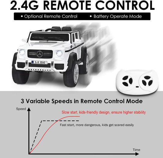 Costzon Ride on Car, Licensed Mercedes-Benz Maybach, 12V Battery Powered Vehicle Toy w/ 2 Motors, Remote Control, 3 Speeds, Lights, Horn, Music, Aux, Storage, Truck, Electric Car for Kids (White)
