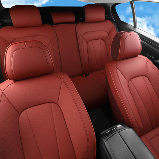 Car Seat Covers Full Set,Red Car Seat Covers,Leather Automotive Seat Covers,Breathable Waterproof Luxury Full Wrapping Edge Seat Covers Fit for Most Cars SUV and Sedans
