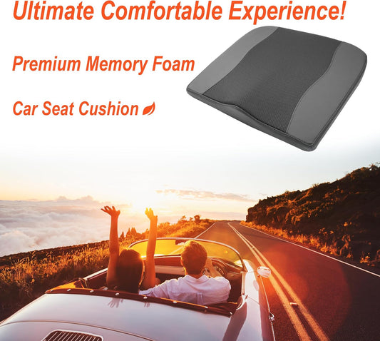 Car Seat Cushion, Comfort Memory Foam Car Cushions for Driving - Sciatica & Lower Back Pain Relief, Driver Seat Pillow for Auto, Office Chair, Wheelchair - Black&Gray