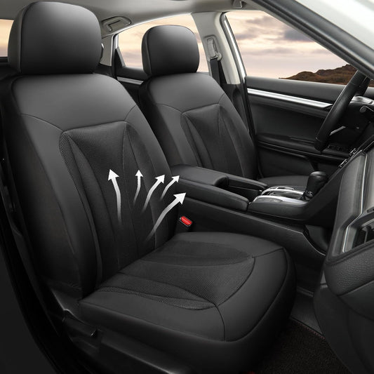 GIANT PANDA Front Seat Cover for Honda, 3D Air Mesh Bucket Car Seat Protectors Custom Fits Honda Civic Accord Pilot CRV HRV Element Passport (Black) 2-Pack