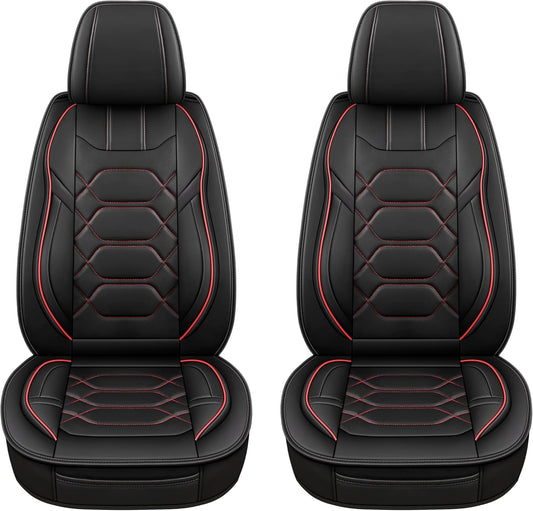 Pariitadin Leather Car Seat Covers Front Pair, Waterproof Faux Leather Seat Covers for Cars, Non-Slip Car Interior Covers Universal Fit for Most Cars Sedans Trucks SUVs, Black/Red