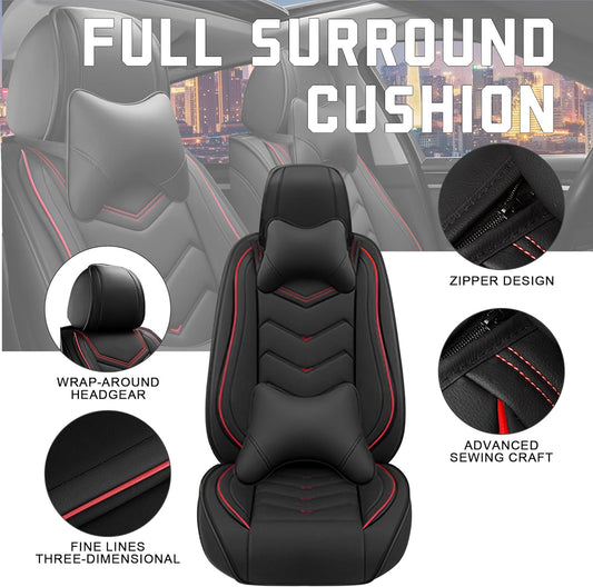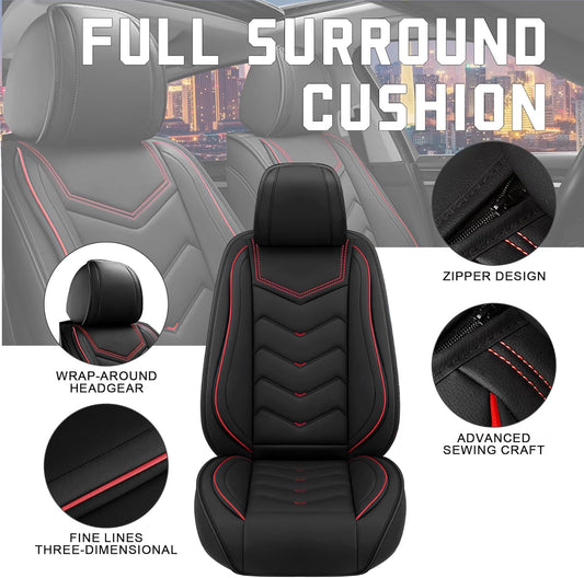 Pariitadin Leather Car Seat Covers Full Pair, Waterproof Faux Leather Seat Covers for Cars, Non-Slip Car Interior Covers Universal Fit for Most Cars Sedans Trucks SUVs, Black/Red Line