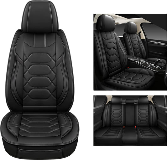 Pariitadin Leather Car Seat Covers Full Set, Waterproof Faux Leather Seat Covers for Cars, Non-Slip Car Interior Covers Universal Fit for Most Cars Sedans Trucks SUVs, Black Line