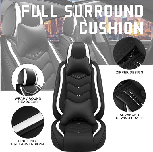 Car Seat Covers for Chrysler Pacifica 2004-2025, Stylish Sport Seat Cover, Premium Nappa Leather Car Seat Cover. Automobile Seat Covers Sets.(Luxury 2 Seats/Black White)