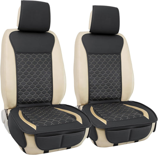 Coverland Custom Car Seat Covers Compatible with Silverado 2500HD, Maverick, Frontier - Premium Leather Non-Slip Memory Foam Waterproof Protector Front Seat-Beige [See Size Chart-Size A40]