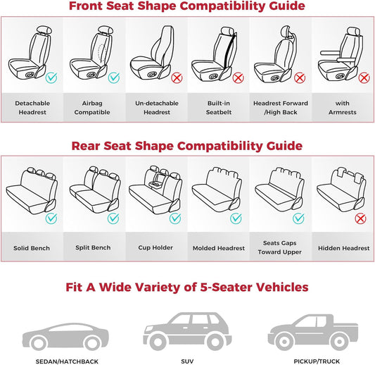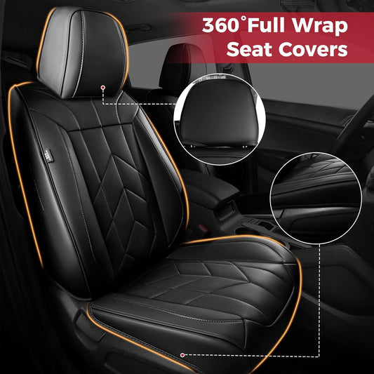 Black Car Seat Covers Full Set - Waterproof Leather Car Seat Protector Universal Fit Escape Fusion Edge Expedition Ranger
