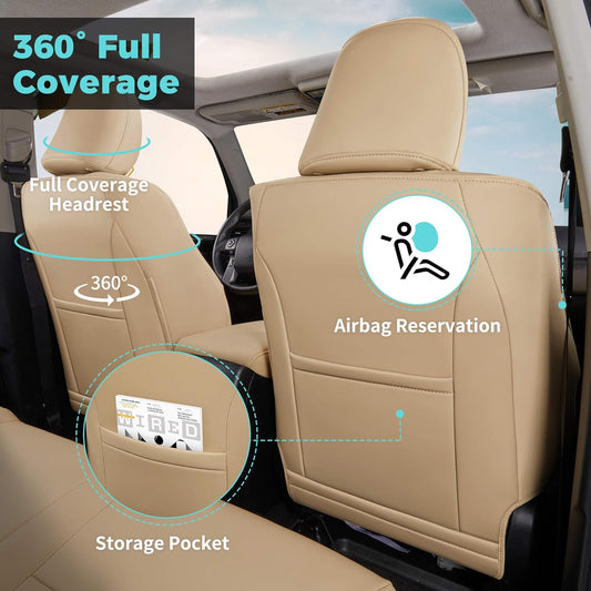 Seat Covers for Toyota 4Runner 2011-2024, Faux Leather Car Seat Cover Full Set, 2-Row-Only for 5 Seats Version-Beige