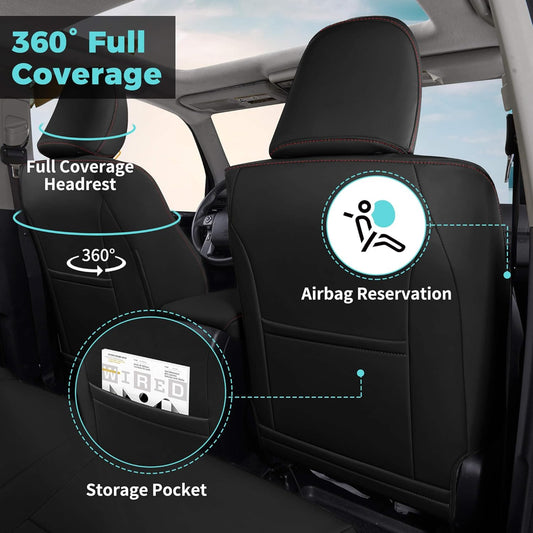 Seat Covers for Toyota 4Runner 2011-2024, Faux Leather Car Seat Cover Full Set, 2-Row-Only for 5 Seats Version-BlackRed