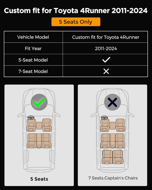Seat Covers for Toyota 4Runner 2011-2024, (5 Seats Only) Full Set Full Coverage Waterproof Leather Seat Covers for 4Runner 2012 2013 2014 2015 2016 2017 2018 2019 2020 2021 2022 2023 Accessories