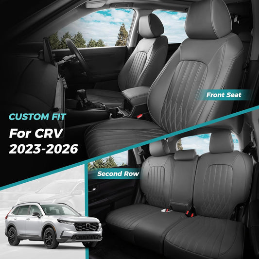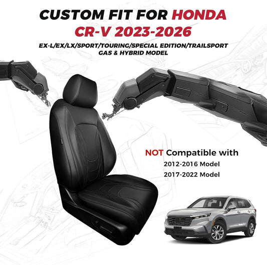 Seat Covers for Honda CRV 2023 2024 2025 2026 EX/EXL/LX/Sport/Touring/Special Edition, Hybrid & Gas, 1:1 Custom Leather Seat Covers Full Set - Black