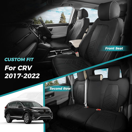 Seat Covers for Honda CRV 2017-2022 EX/EXL/LX/Sport/Touring/Special Edition, Hybrid & Gas,1:1 Custom Fit Leather Seat Covers Full Set - Black