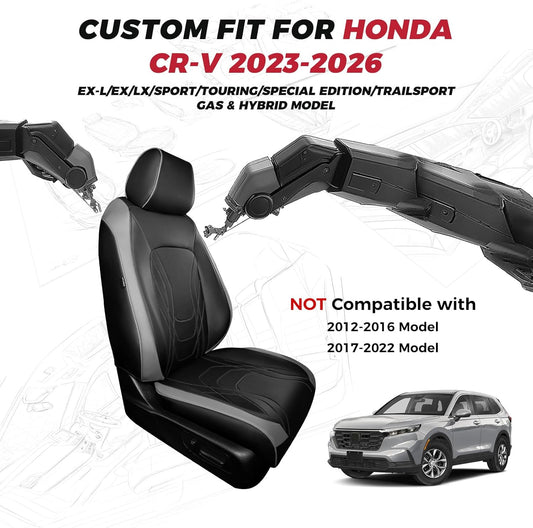 Seat Covers for Honda CRV 2023 2024 2025 2026 EX/EXL/LX/Sport/Touring/Special Edition, Hybrid & Gas, 1:1 Custom Leather Seat Covers Full Set - Grey