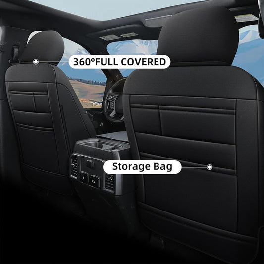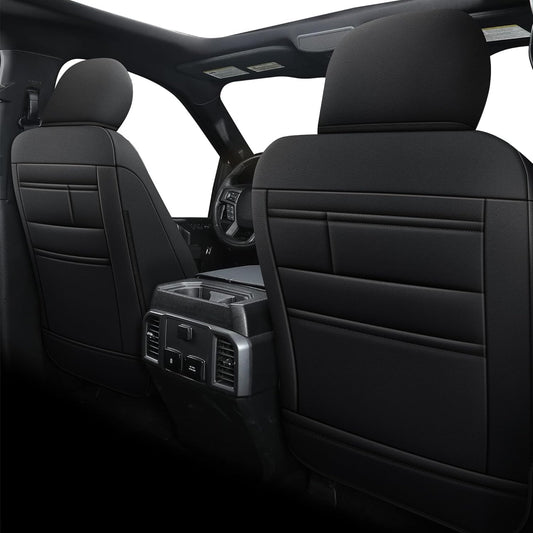 AOMSAZTO Front Seat Covers for Ford F150 XL XLT: 2015-2024 SuperCrew & F250 F350 F450 2017-2024 Super Duty Crew Cab XL XLT Faux Leather Full Set Seat Cover (Black, 2PCS Front)
