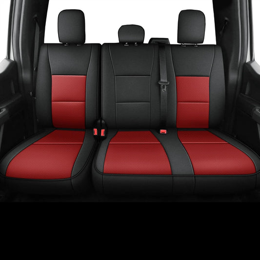 AOMSAZTO Seat Covers for Ford F150 XL XLT: 2015-2024 SuperCrew & F250 F350 F450 2017-2024 Super Duty Crew Cab XL XLT Faux Leather Full Set Seat Cover (Black + Red, Full Set)
