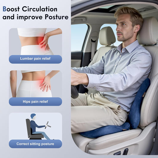 Coverado Memory Foam Car Seat Cushion and Lumbar Support Pillow for Car, Ergonomic Office Chair Cushion for Lower Back Pain Relief, Breathable & Non-Slip for Car, Home, and Office Use, Blue