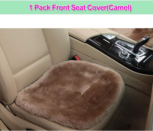 20 inchs Shearling Sheepskin Car Seat Cover, Fluffy Fuzzy Wool Car Seat Covers for Auto Interior Accessories with Soft Eco-Friendly Natural Fur Non-Slip (Camel, Front)