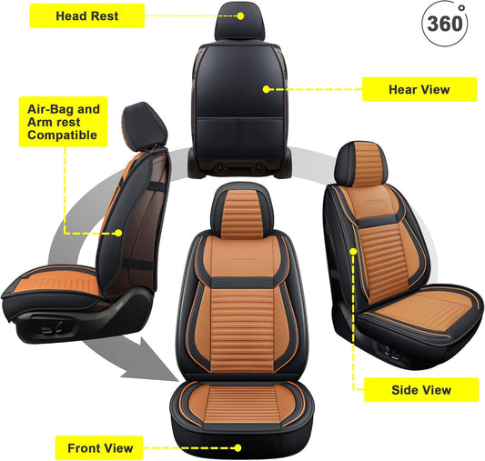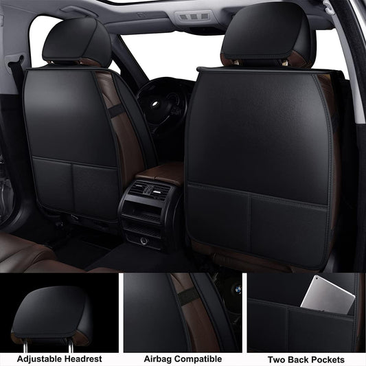 LINGVIDO Universal Car Seat Cover, Breathable and Waterproof Faux Leather Automotive Seat Covers for Cars SUV Sedan (Front seat, Brown & Black)