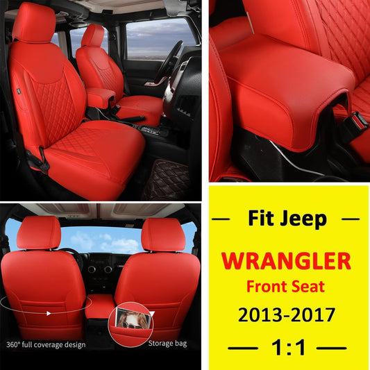 GIANT PANDA Customized Front Car Seat Covers for Jeep Wrangler JK 2/4 Door Sahara Sport Rubicon Unlimited Altitude 2013 2014 2015 2016 2017,Faux Leather - (Red)