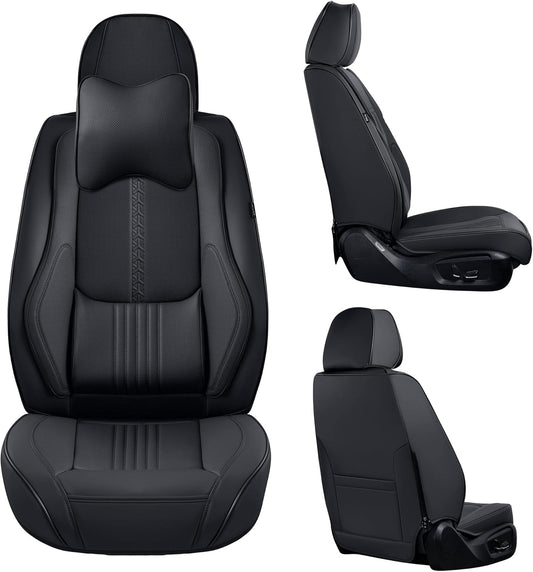 Front Seat Covers, 2 Pieces Universal Seat Covers for Cars, Waterproof Leather Auto Seat Protectors with Head Pillow, Car Seat Cushions Fit for Most Sedans SUV Pick-up Truck, Black