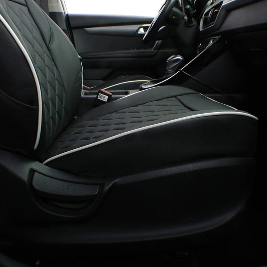 EKR Sportage Seat Covers Custom Fit for KIA Sportage LX 2023 2024 2025 2026 Leather Car Seat Cover Full Set - Faux Leather (Black with White Piping)
