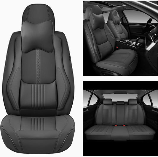Car Seat Covers Full Set, Front and Rear Seat Covers for Cars, Waterproof Leather Auto Seat Protectors with Head Pillow, Car Seat Cushions Fit for Most Sedans SUV Pick-up Truck, Black