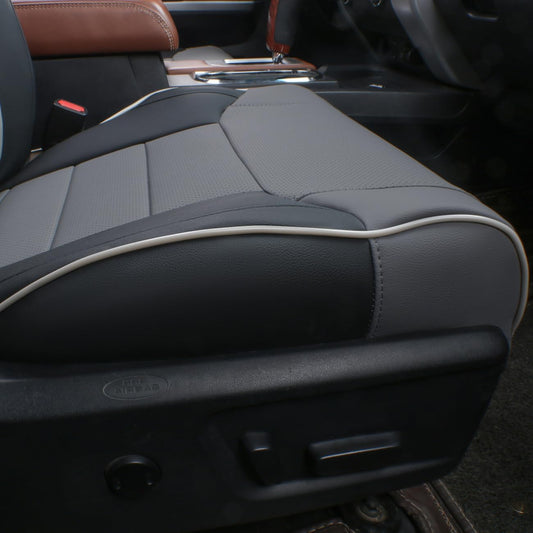 EKR Custom Fit Tacoma Leather Car Seat Covers for Select Toyota Tacoma 2012 2013 2014 2015 (Regular Seats)- Full Set, Leathere (Black/Gray)