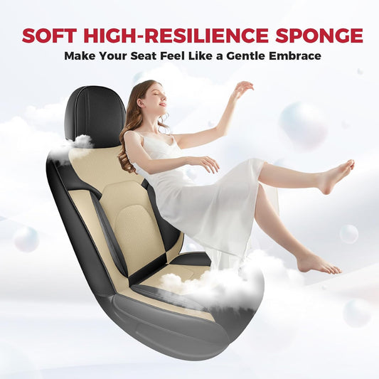 FREESOO Car Seat Covers Full Set,Waterproof Automotive Seat Covers, Leather Cars Interior Covers, Seats Protection Universal fit Babies & Adult (Black Beige)
