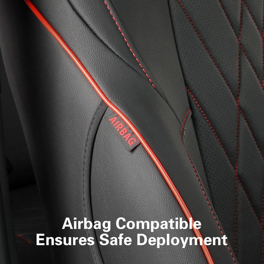 FREESOO Car Seat Covers Full Set,Waterproof Automotive Seat Covers, Leather Cars Interior Covers, Seats Protection Universal fit Babies & Adult (Black Red)