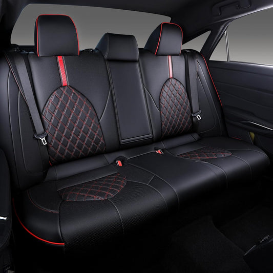 Custom Fit Camry Seat Covers for Toyota Camry Hybrid LE, Hybrid SE 2018-2024 Full Coverage Waterproof Breathable Leather Car Seat Covers Full Set (Black with Red Trim)