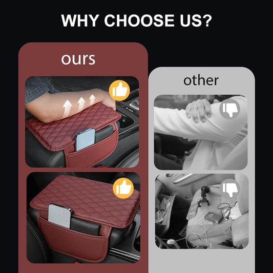 Memory Cotton Leather Car Armrest Box Pad, 2025 New Universal Style Memory Cotton Car Armrest Box Pad, Upgrade Vehicle Seat Box Cushion Protector for SUV Truck (Red)