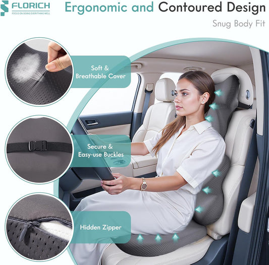 FLORICH Car Seat Cushion and Lumbar Support Pillow for Office Chair Car, Neck Headrest Pillow, Ergonomic Memory Foam, Pressure-Relieving Back Support for Car, Office Chair & Wheelchair – Black