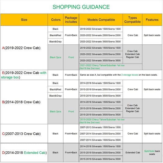 BABYBLU Chevy Chevrolet Silverado GMC Sierra Car Seat Covers Fit 2007-2023 2024 2025 1500/2500HD/3500HD (Black, Full Set)