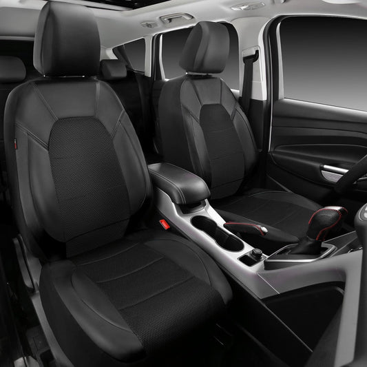 Seat Covers for Honda Civic Sedan LX 2016 2017 2018 2019 2020 2021, Faux Leather Car Seats Cover Full Set (Rear Row Solid & No Folding Backrest)-Black