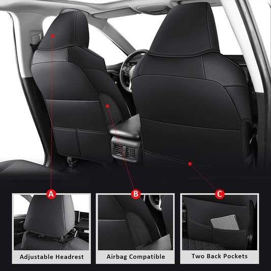 MIROZO Seat Covers for rav4,Waterproof Car Seat Covers Faux Leather Seat Cover Full Set Fit for 2019-2025 Toyota RAV 4 Non-Hybrid (Not for Adv & TRD-Off,Black)