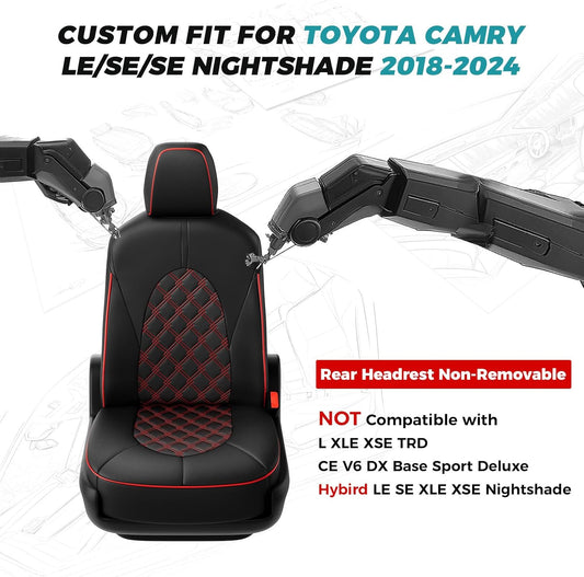 for Toyota Camry Seat Covers LE SE SE Nightshade 2018 2019 2020 2021 2022 2023 2024 - Custom Car Seat Covers Full Set, Waterproof Breathable Leather Seat Covers for Cars, Black Red Not Hybrid