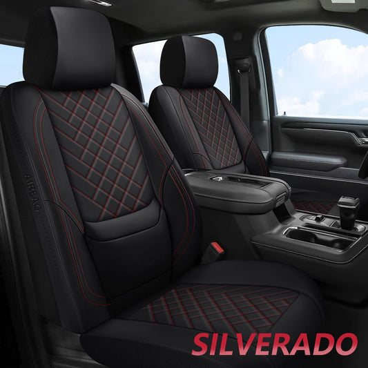 BABYBLU Chevy Chevrolet Silverado GMC Sierra Car Seat Covers Fit 2007-2023 2024 2025 1500/2500HD/3500HD (Black & Red, Full Set)