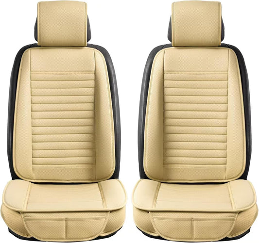 2pc Car Seat Covers, Luxury Car Protectors,Universal Anti-Slip Driver Seat Covers, Edge WrappingsFront Car Seat Covers with PU Leather(Beige)