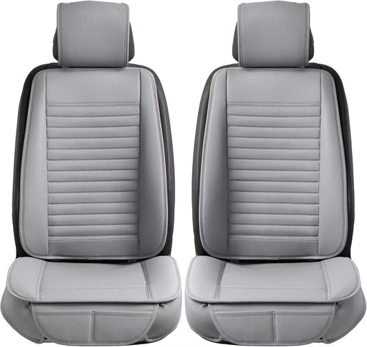 2pc Car Seat Covers, Luxury Car Protectors, Universal Anti-Slip Driver Seat Covers, Edge Wrapping Front Car Seat Covers with PU Leather(Gray)