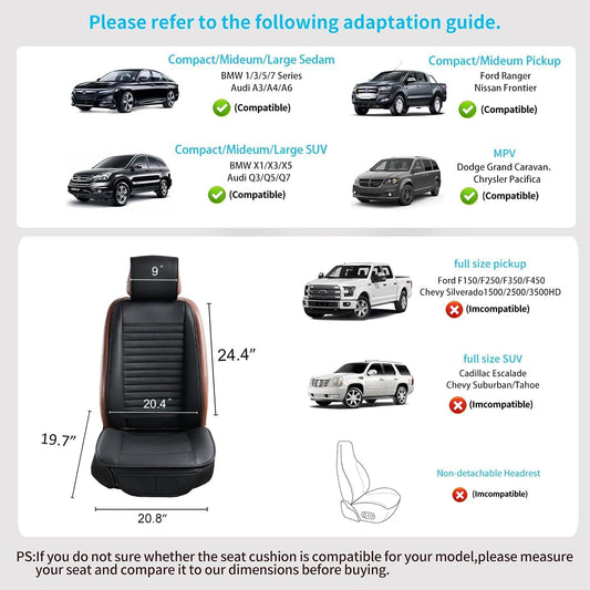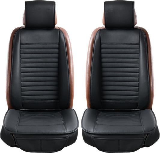 2pc Car Seat Covers, Luxury Car Protectors, Universal Anti-Slip Driver Seat Covers, Edge Wrapping Front Car Seat Covers with PU Leather(Black)