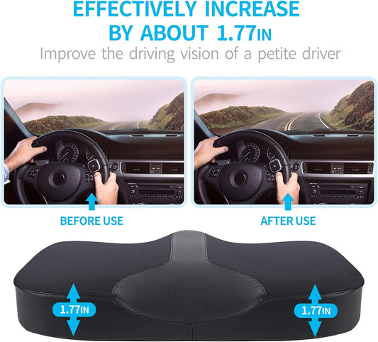 Leather Car Memory Foam Heightening Seat Cushion for Short People Driving, Hip(Coccyx/Tailbone) and Lower Back Pain Relief Butt Pillows, Adult Booster Seat for Car,Truck,SUV, Office Chair.