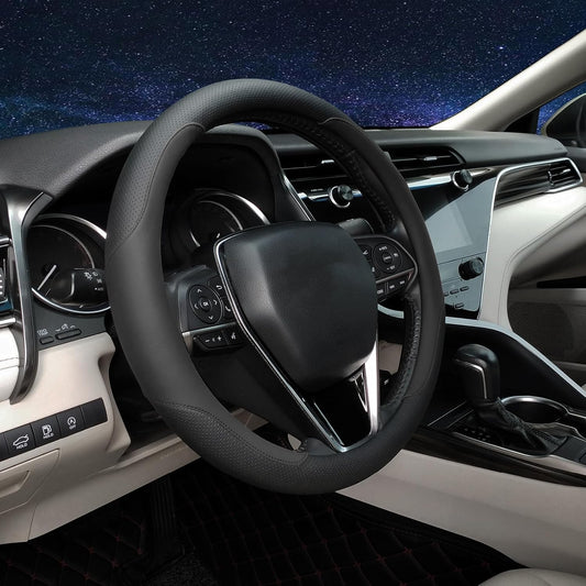 Auto Newer Breathable Steering Wheel Cover Suitable For Four Seasons,Anti-Slip Design,Odorless,Easy Carry Unviersal Fit for Truck SUV Sedans Vans,Interior Accessories Standard Size[14" 1/2-15"](Black)
